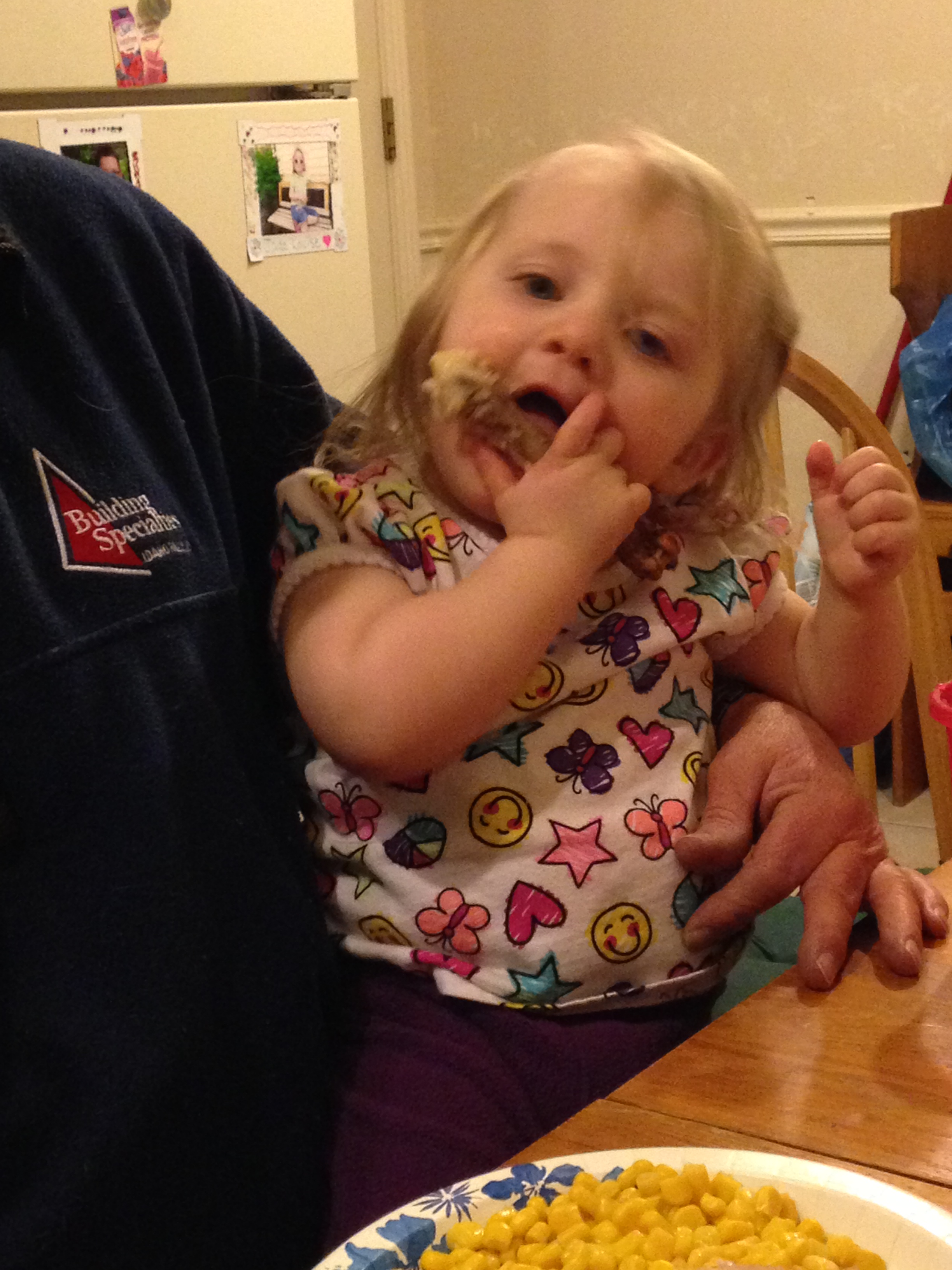 She wouldn’t just eat the chicken that I cut for her. She had to have the bone that Grandma or…