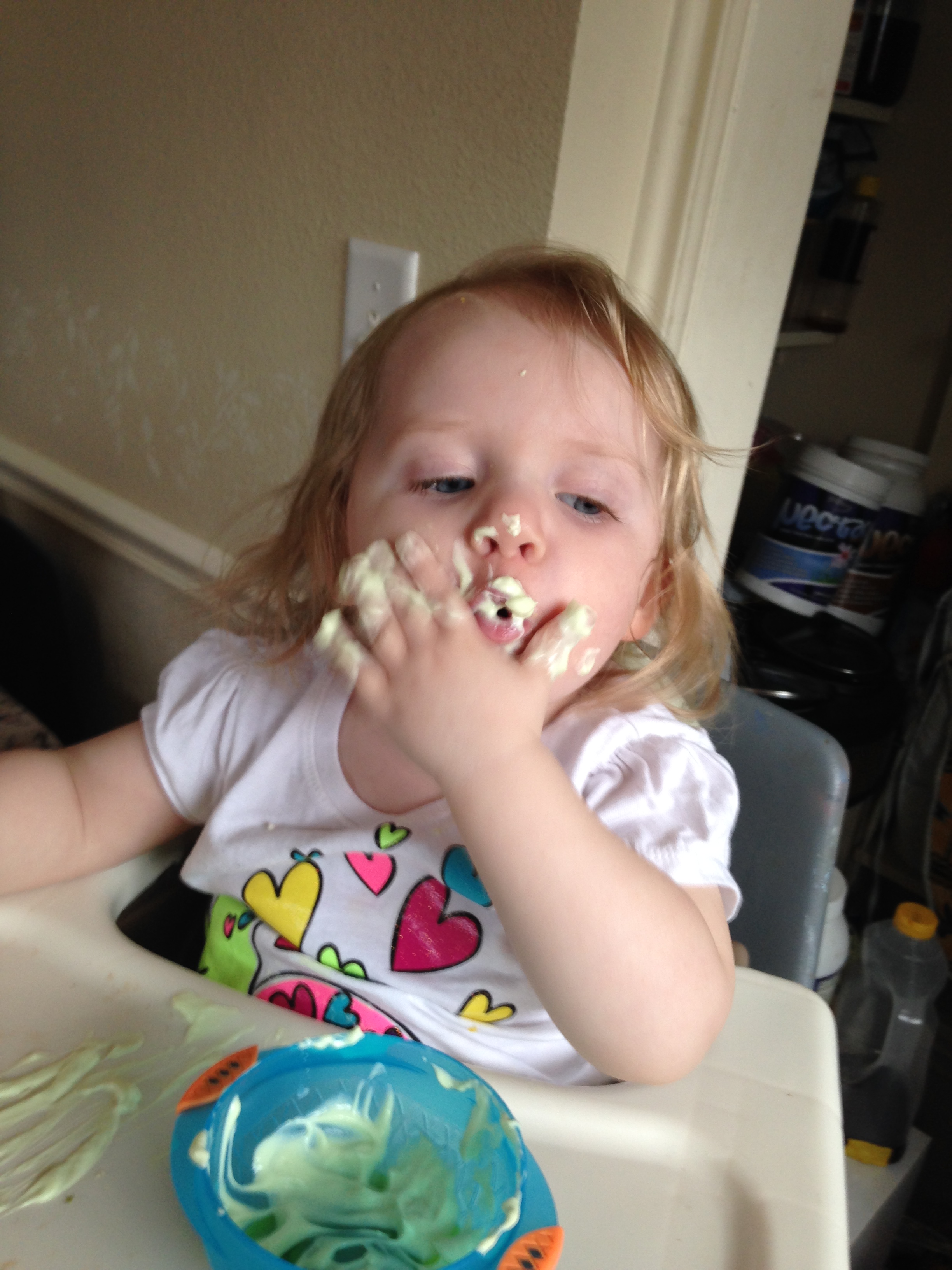 I know I shouldn’t let her play with her food, but it’s just so darn cute!