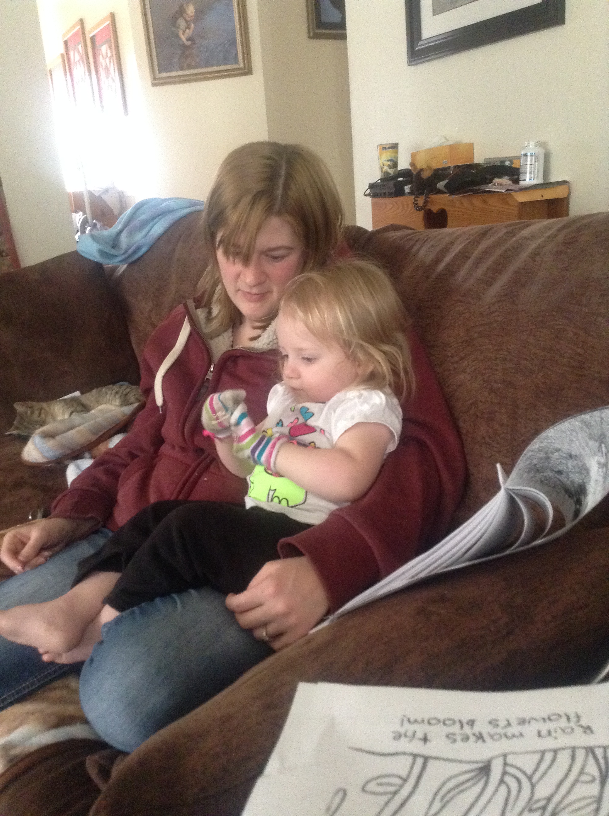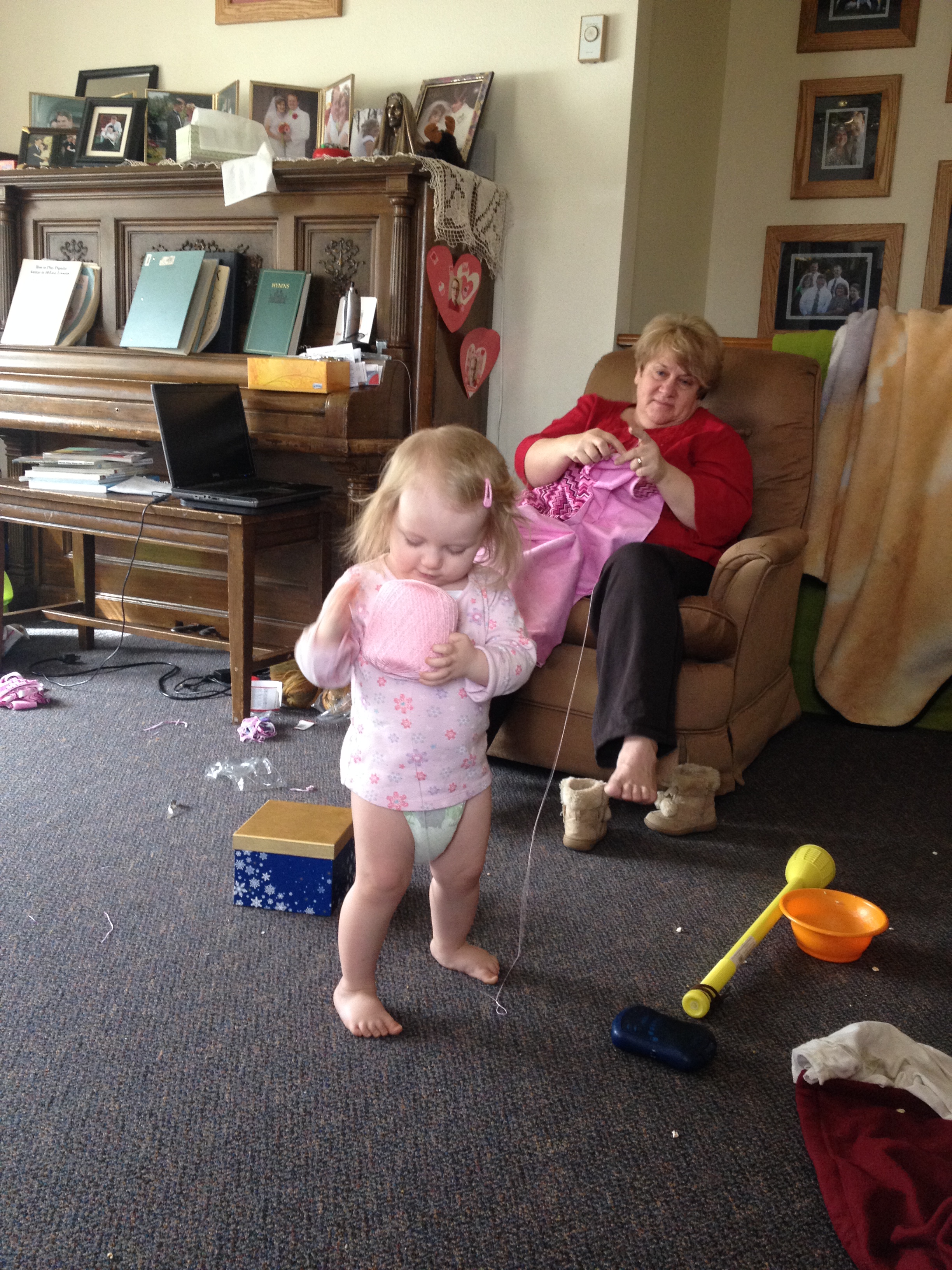 Mom has been working on a blanket for a baby shower, but it doesn’t go too fast when Lily…