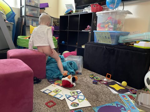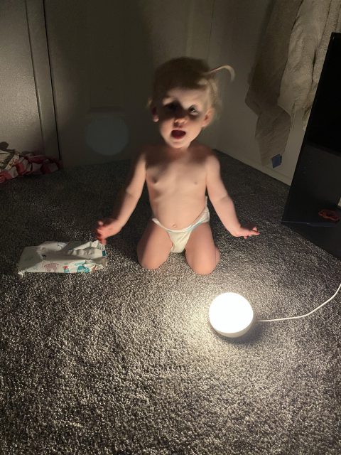 This munchkin did not want to go to sleep. She loves playing with the changing colors of the baby globe,…