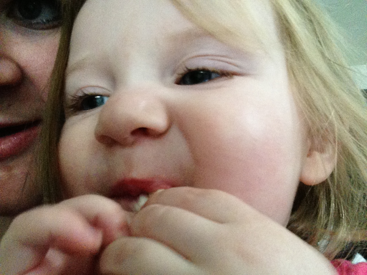 Grandma also taught her how to turn on and off the light in the fridge, and so she has to push the button a couple of times before I can drag her away.