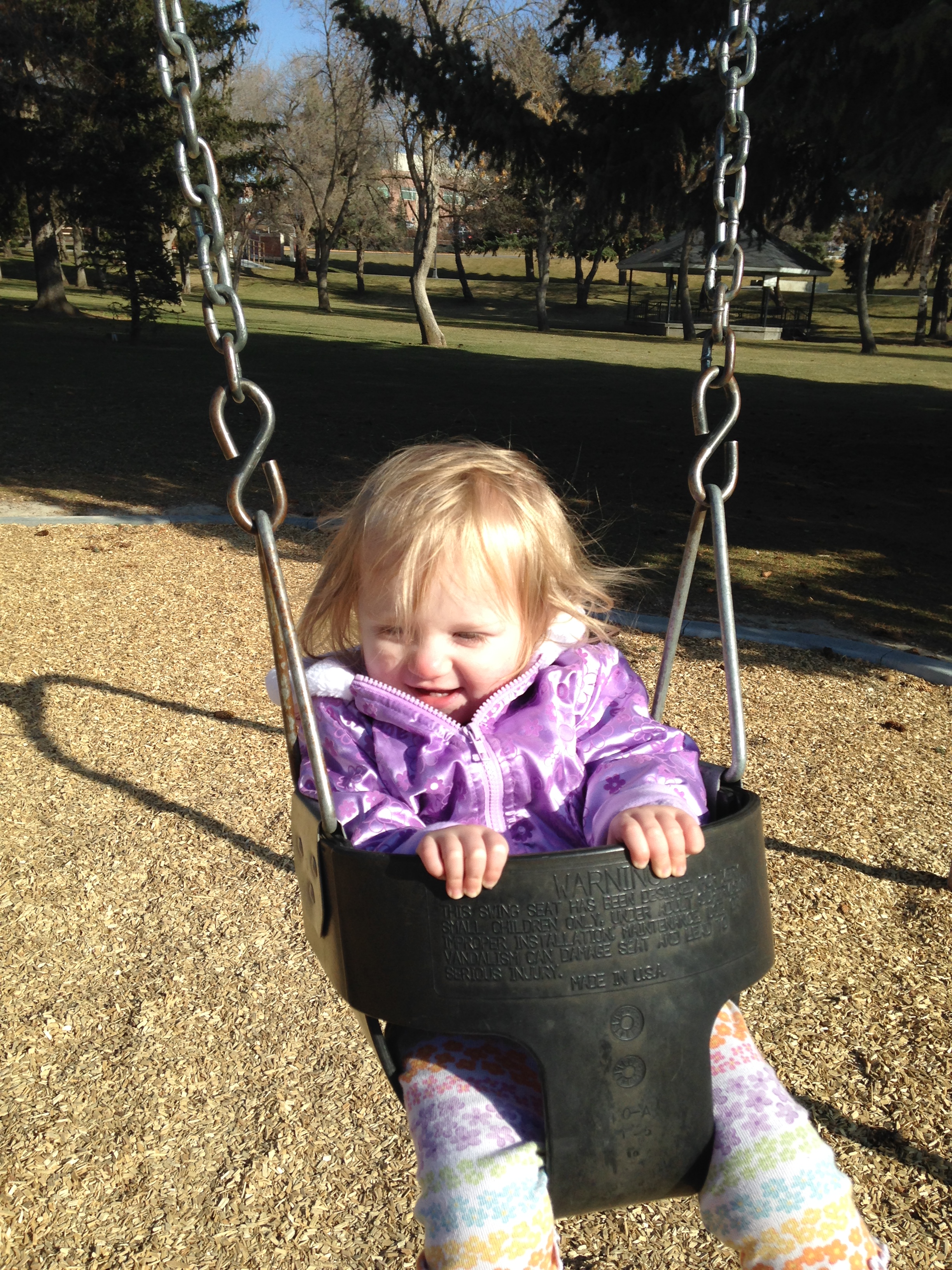 This little one LOVES to swing!! This was her first time and she couldn’t stop laughing and talking. I can’t wait until it gets warmer to be able to go out and play all the time. 🙂