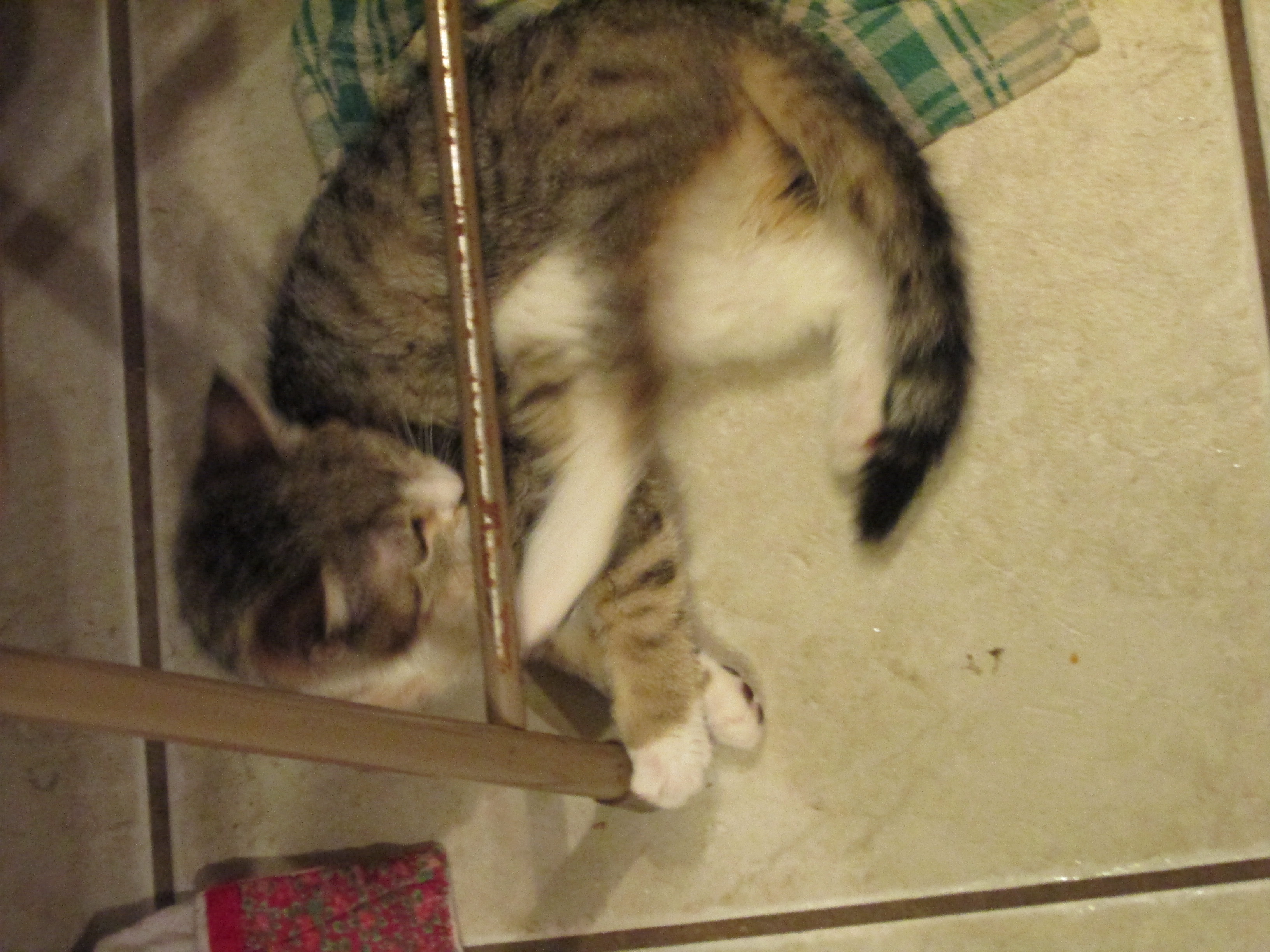 Close up of the crazy kitty. It has a super fun personality, and part of that is that this cat loves to cuddle. It will climb up on Daniel’s shoulder, or mom’s lap, and just snuggle for a nap.